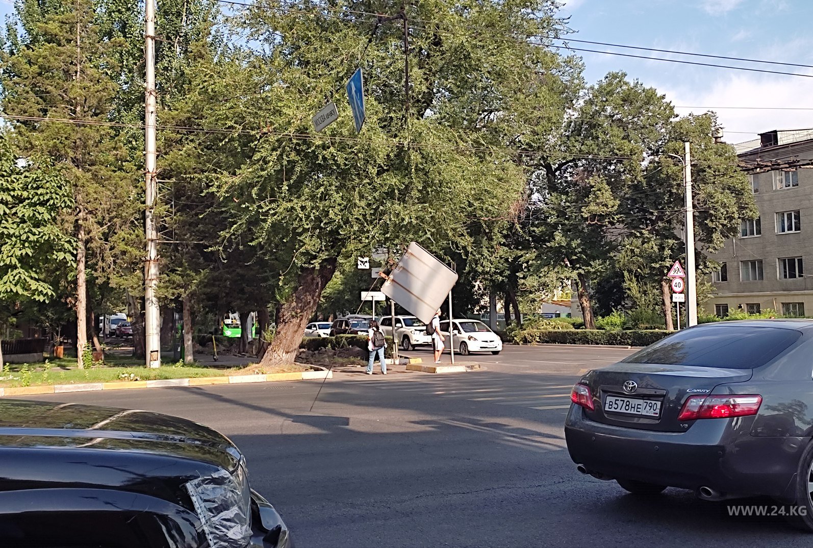 В Бишкеке на проспекте Манаса оборвался дорожный знак и мешает движению