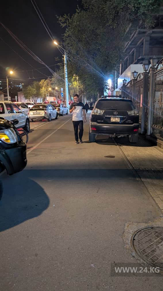 На пересечении улиц Боконбаева и Тыныстанова машину оставили прямо на перекрестке. Собирался ли водитель «Тойоты» ехать дальше или тоже хотел припарковаться рядом, неизвестно.