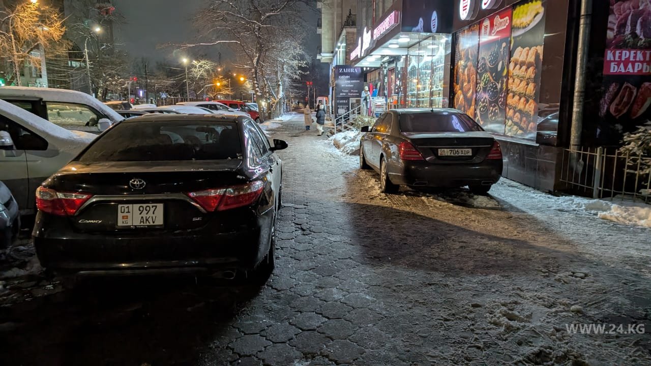 Эта машина стояла на тротуаре на улице Абдрахманова.