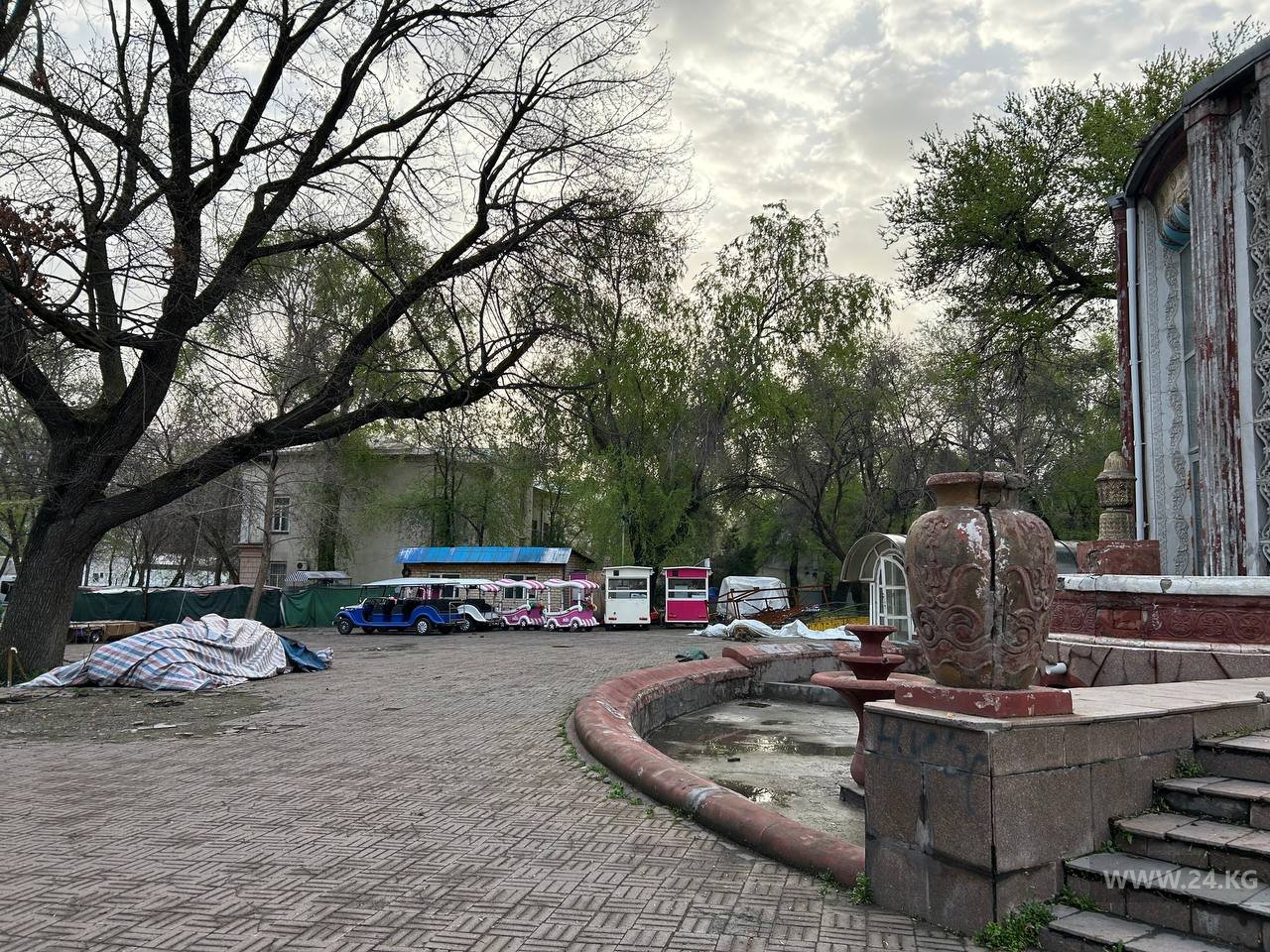 По словам бишкекчан, территория вокруг павильона превратилась в складирование мусора и запрещенных здесь к прокату мини-аттракционов, киосков мороженого и батутов.