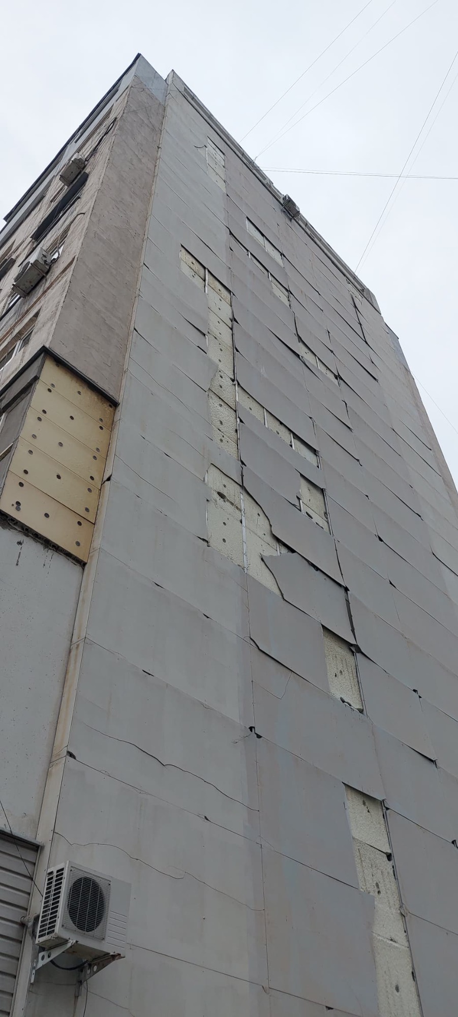 В микрорайоне «Средний Джал» на торце дома № 22 из-за сильного ветра падают фиброцементные панели с высоты девятого этажа на пешеходную зону. Об этом 24-kg.com сообщил читатель.