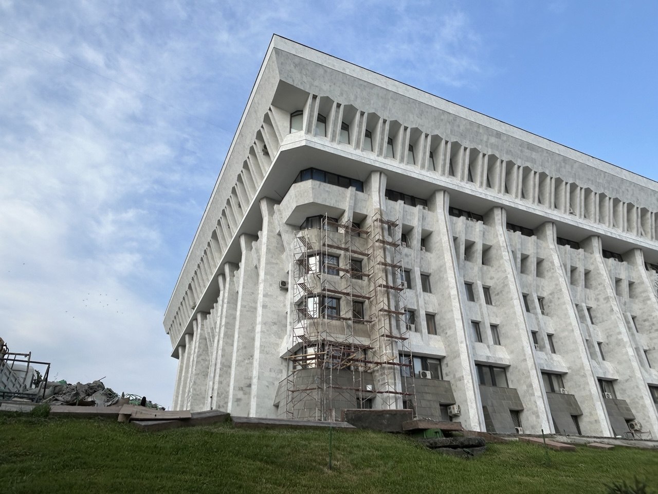 «Белый дом» приводят в порядок, и оказалось, что он реально белый — его сейчас отмывают от многолетней грязи и пыли, сообщил 24-kg.com читатель и прислал в редакцию фото.
