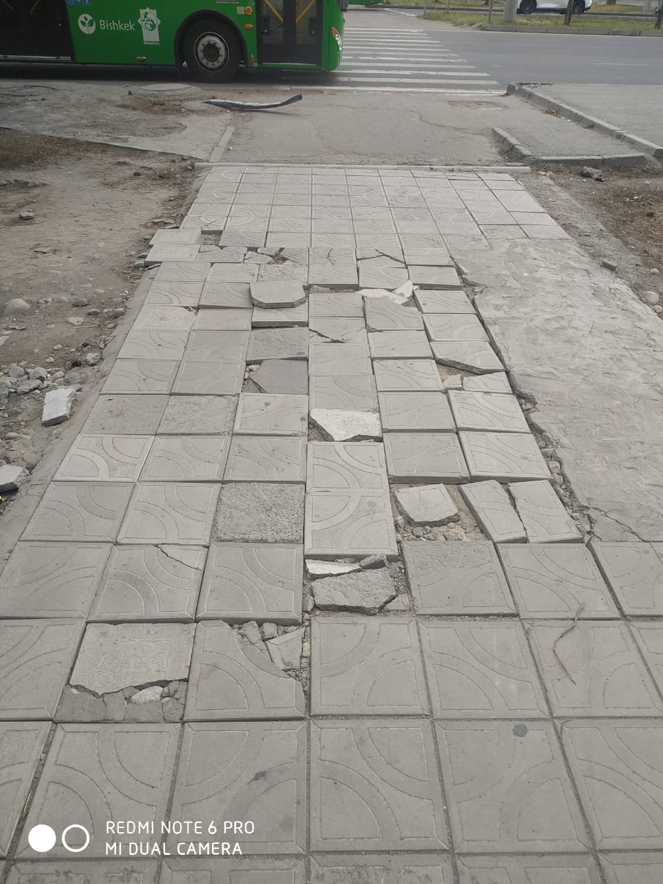 После ремонта на пересечении улиц Токомбаева и Сухэ-Батора в Бишкеке вскрытую брусчатку не восстановили. Об этом 24-kg.com сообщил читатель.