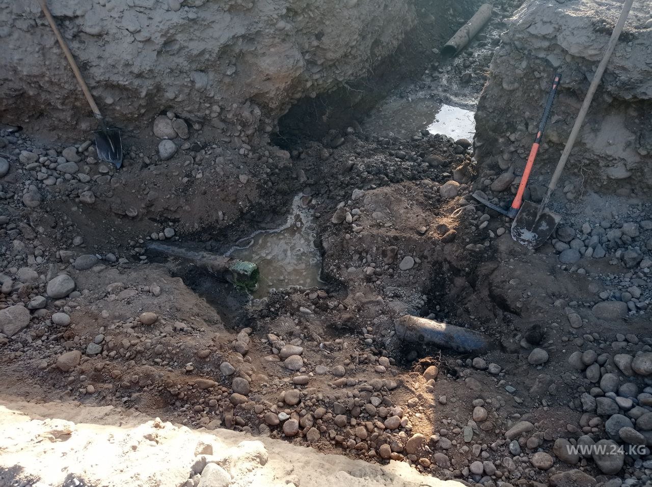 По их данным, рабочие подрядной компании ОсОО «Технабсервис» рыли траншею и поломали водопроводную трубу. Улица Самойленко осталась без питьевой воды.