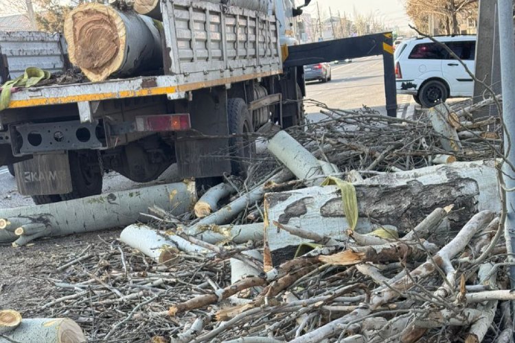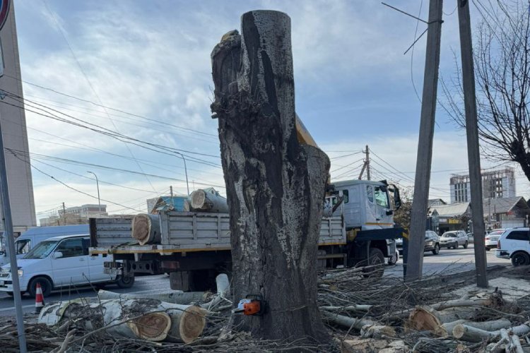 В Бишкеке возле кафе Lale Doner на пересечении улиц Ахунбаева и Шукурова без разрешительных документов спилили тополь. Об этом 24-kg.com сообщили жители близлежащих домов.