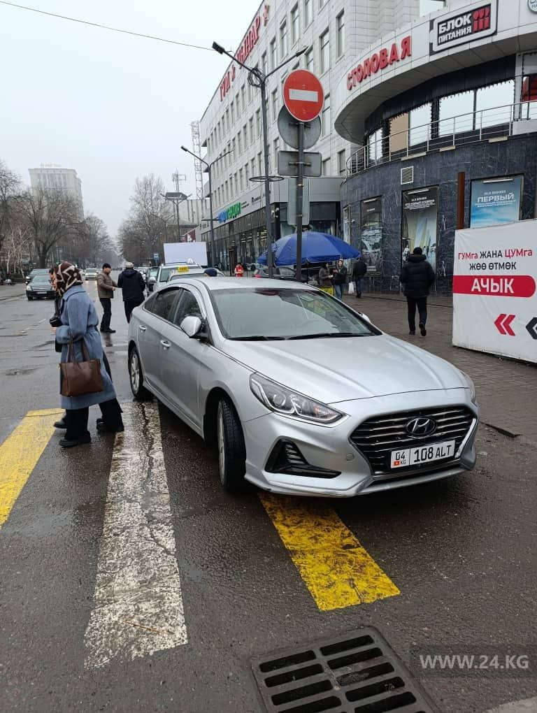 В Бишкеке автомобиль оставили на зебре, мешая пешеходам