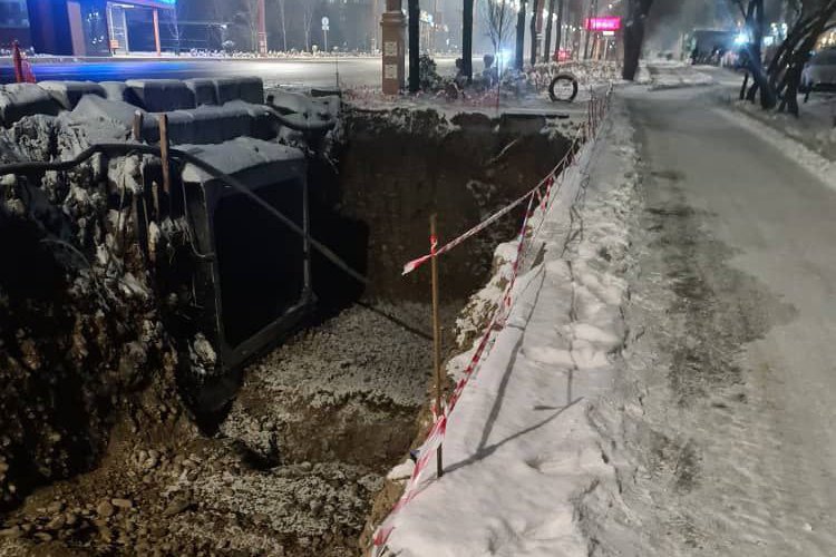 Горожане обеспокоены состоянием строительного объекта на проспекте Чингиза Айтматова. По их словам, котлован строящегося пешеходного перехода не огражден должным образом, что представляет угрозу для безопасности граждан.