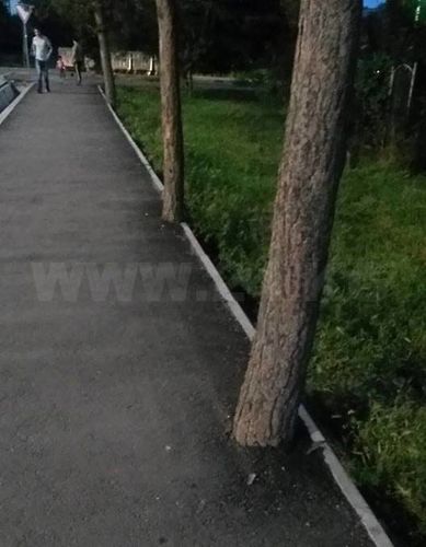 В Бишкеке в пятом микрорайоне при ремонте дорог заасфальтировали деревья. Об этом ИА «24-kg.com» сообщили читатели по WhatsApp.