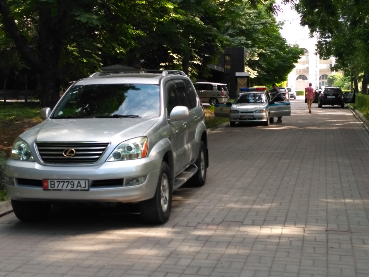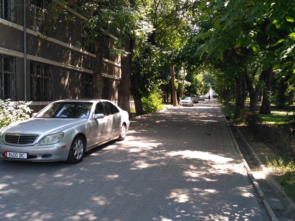 Пешеходный тротуар в Дубовом парке в Бишкеке превратили в парковку. Об этом ИА «24-kg.com» сообщил читатель.