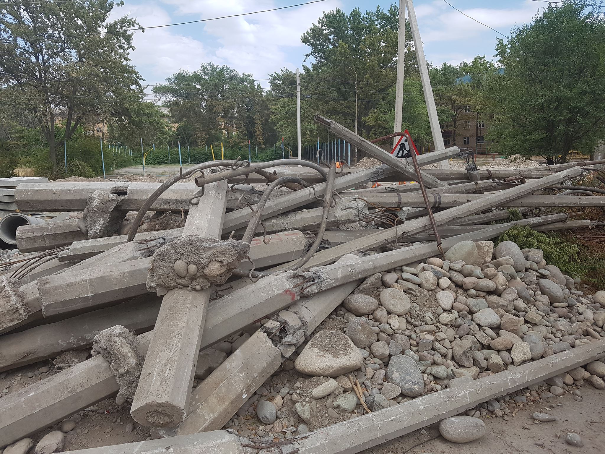 По их словам, вместо того чтобы аккуратно демонтировать столбы, их сломали, бросили в кучу.