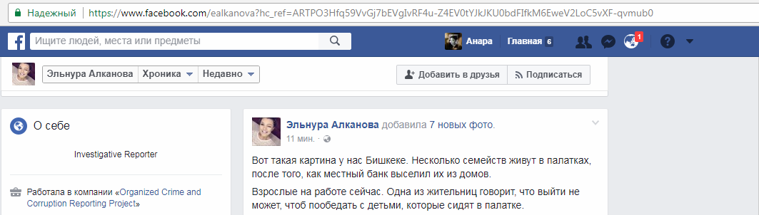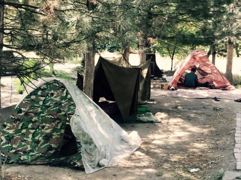 В Бишкеке несколько семей живут в палатках. Об этом сообщает на своей странице в Facebook пользователь Эльнура Алканова.