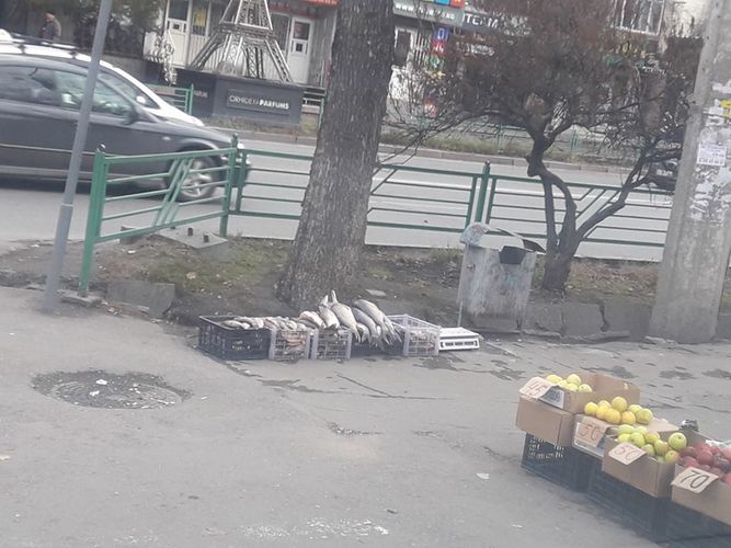 Свежую рыбу и фрукты продают прямо на тротуаре возле Центра государственного санитарно-эпидемиологического надзора в Бишкеке. Соотвествующую фотографию опубликовали сегодня в группе «Черный список» — нам не понравилось» в Facebook.