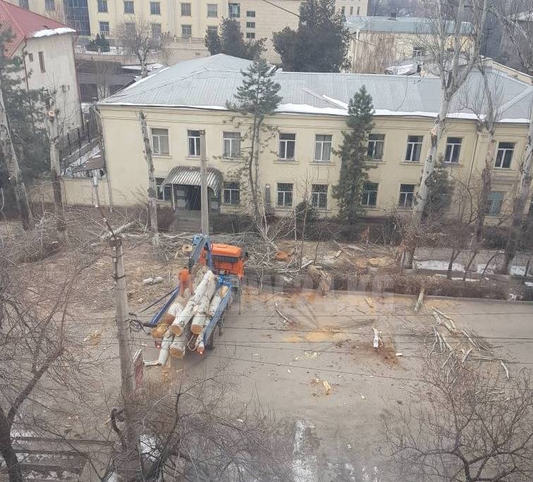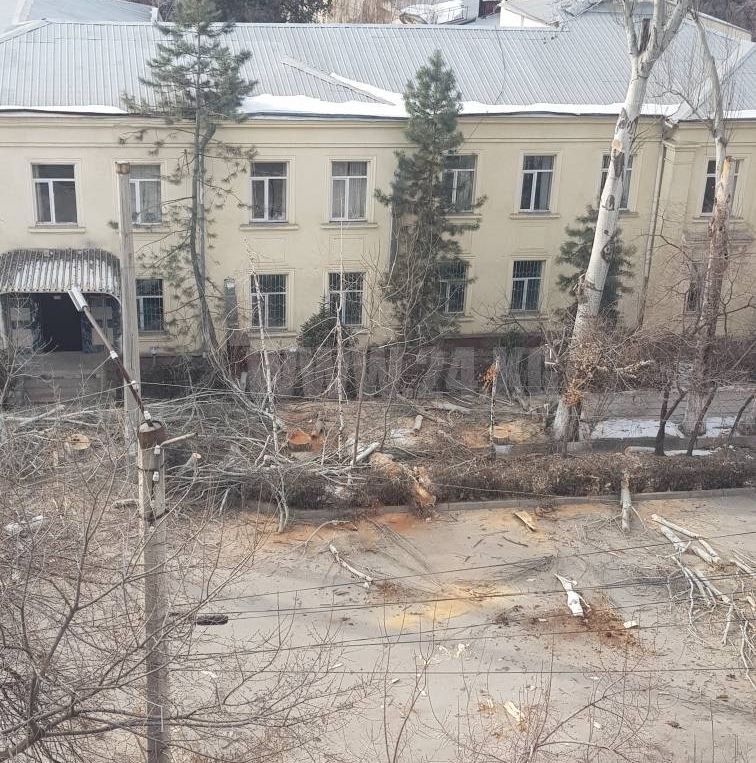 «В Бишкеке по улице Тыныстанова от Московской до Боконбаева спилили почти все деревья», — сообщил читатель ИА «24-kg.com».