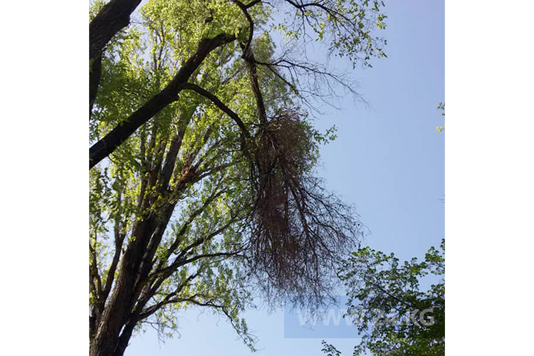 На входе в парк имени Таттыбюбю Турсунбаевой, на пересечении улиц Панфилова и Фрунзе, над тротуаром нависли огромные ветки. Об этом ИА «24-kg.com» сообщил читатель.