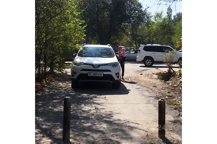 Очередной «хозяин» тротуара решил, что после ремонта на улице Орозбекова новая аллея — отличное место для машины.