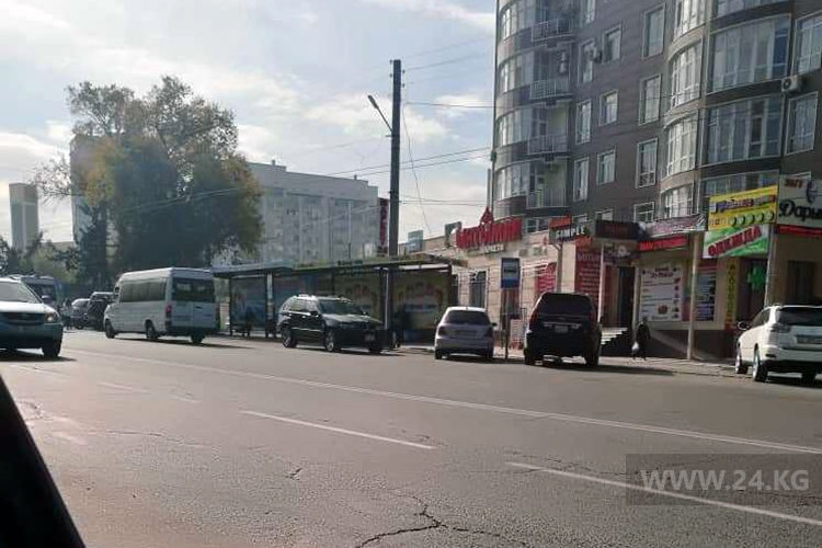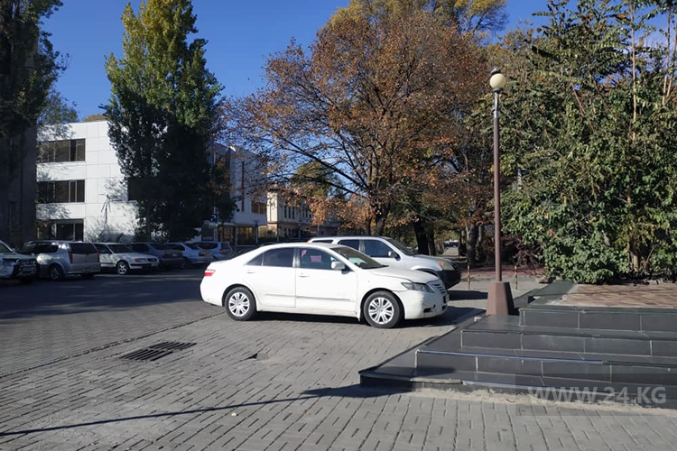 «На перекрестке проспекта Чуй и улицы Исанова «Тойота» с госномером 01 KG 885 AAD стоит под знаком «Остановка запрещена» и перед светофором, заняв правую полосу и создав затор. Водителя в авто не оказалось», — написал один из них.