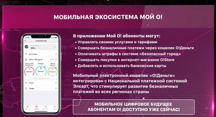 Напомним, что в 2017 году Мобильный оператор О! совместно с «Грин Телеком Сервис» одним из первых обеспечил доступ абонентам О! к мобильному финансовому сервису — электронному кошельку «О!Деньги», а сегодня он входит в единую экосистему мобильных услуг для абонентов «Мой О!».