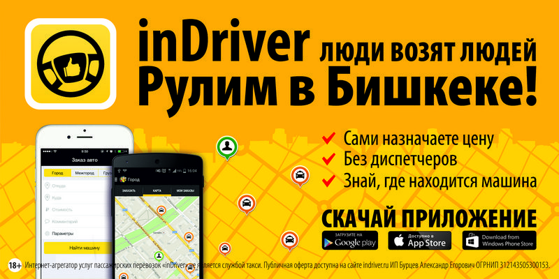 Присоединяйся и оцени все возможности inDriver! Мобильное приложение доступно для скачивания на смартфонах на базе Android, iOS или Windows Phone.
