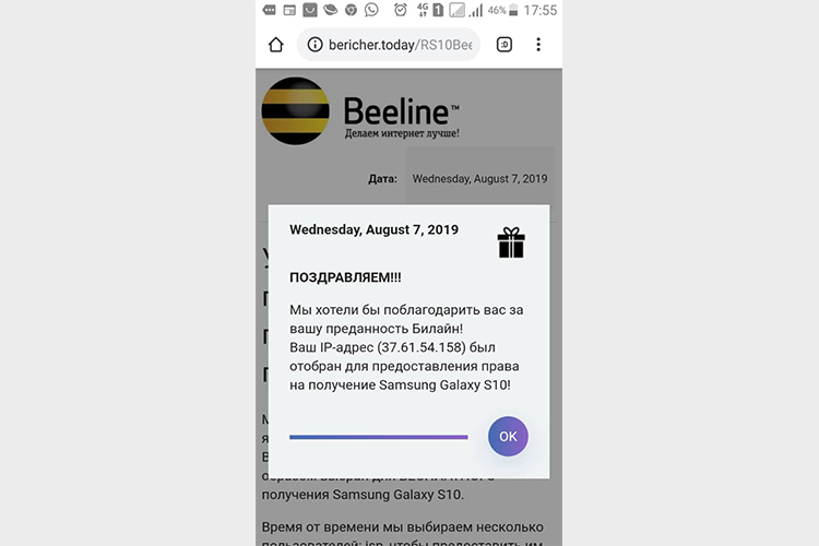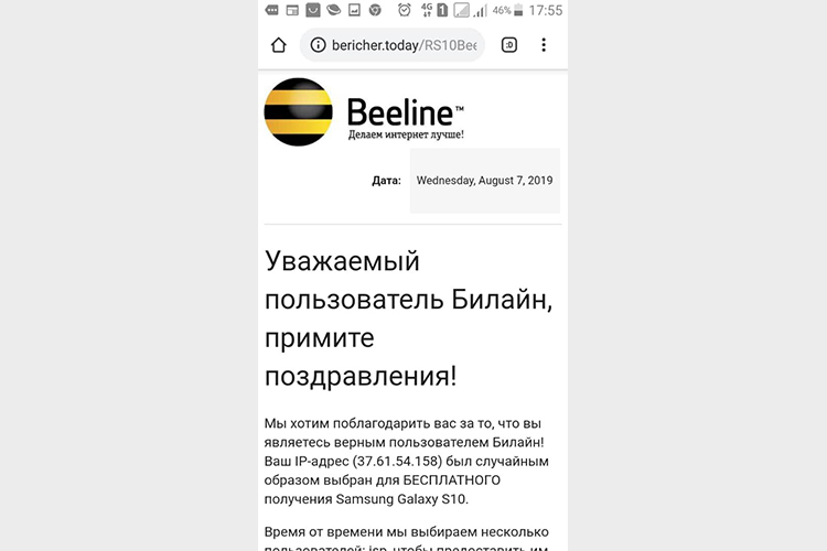 Еще один вариант — сообщение о поступившей посылке, выигрыше. Задавайте уточняющие вопросы.