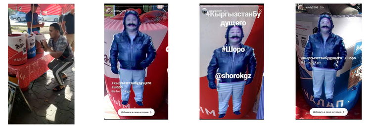 «Сторис и маски — это как аралаш, лучшее сочетание. Поэтому мы создали свою фирменную маску! Каждый может примерить на себя знаменитые усы Шоро байке и поделиться фото в сторис», — рассказала начальник отдела маркетинга и развития компании «Шоро» Дильбар Тургунбаева.