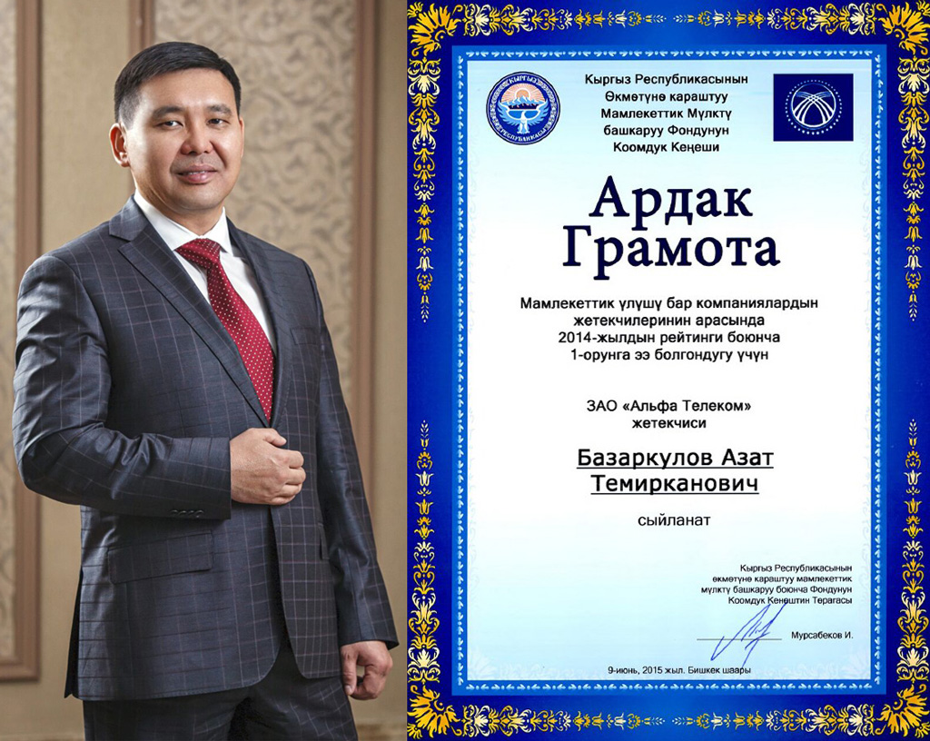 Генеральный директор компании MegaCom Азат Базаркулов возглавил рейтинг «Лучших руководителей» среди государственных компаний Кыргызстана, подготовленный Общественным советом Фонда по управлению государственным имуществом (ФУГИ).