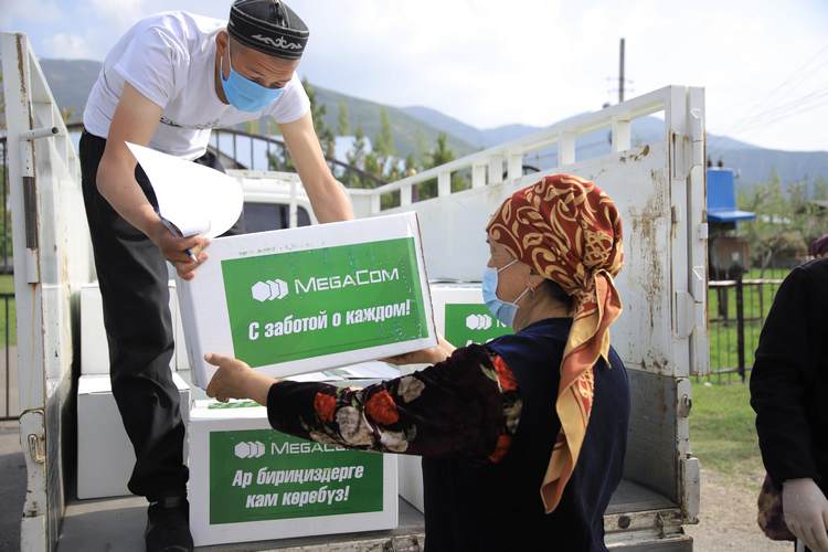 В целях поддержки населения в период сложной эпидемиологической ситуации компания MegaCom организовала раздачу гуманитарной помощи в виде продуктовых наборов и SIM-карт, подключенных к бесплатным пакетам связи и интернета, нуждающимся в Джалал-Абадской, Нарынской, Ошской и Чуйской областях — очаговых регионах, где было выявлено наибольшее число заразившихся коронавирусной инфекцией и введен режим ЧП.