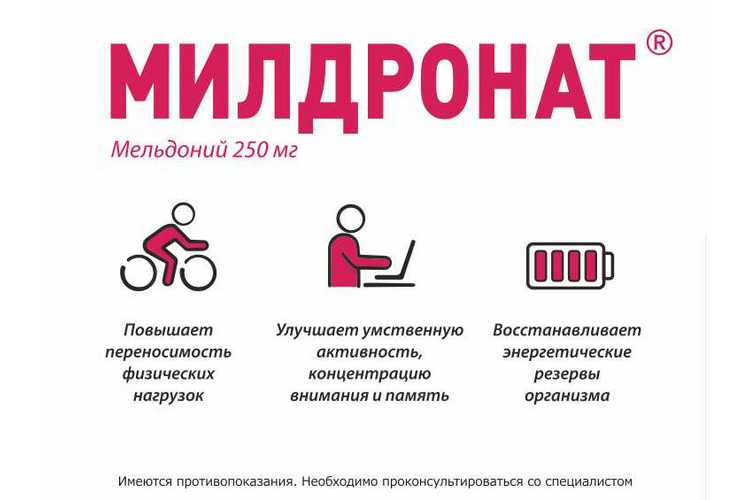 Имеются противопоказания. Перед применением ознакомитесь с инструкцией по применению. РУ KG.3.3.796.04555-2016 от 26 октября 2016 года. www.mildronat.ru.