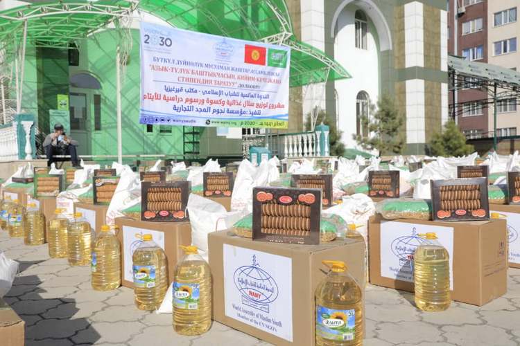 В благотворительном мероприятии приняли участие заместитель министра труда и социального развития КР Ализа Солтонбекова, и. о. мэра Бишкека Балбак Тулобаев, представитель ВАММ по Средней Азии Саид Баюми и президент ВАММ в Кыргызстане Мухаммед Мади.