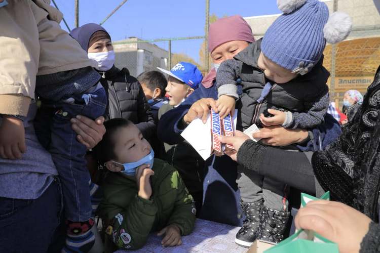 Кроме того, каждый ребенок получил по 4 тысячи сомов в виде социального пособия, а также продуктовый пакет (содержимое пакета: мука — 25 килограммов, макароны — 9 килограммов, сахар — 10 килограммов, рис — 10 килограммов, манная крупа — 2 килограмма, гречка — 2 килограмма, чай — 250 граммов, масло — 10 литров, сладости — 1 килограмм, томатная паста — 1 литр, сгущенное молоко — 1 литр).