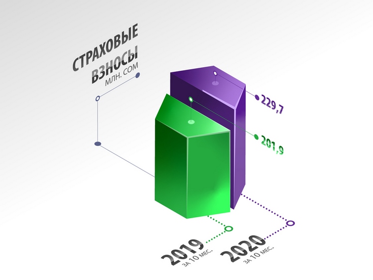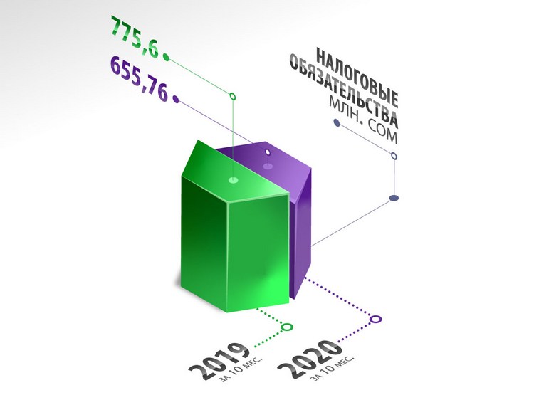 за 10 месяцев 2020 года компанией были начислены налоговые обязательства в сумме 655 миллионов 760 тысяч сомов (84,5 процента от показателя за 10 месяцев 2019 года), страховые взносы — в сумме 229 миллионов 700 тысяч сомов (113,8 процента), то есть суммарно — 885 миллионов 460 тысяч сомов (90,6 процента).