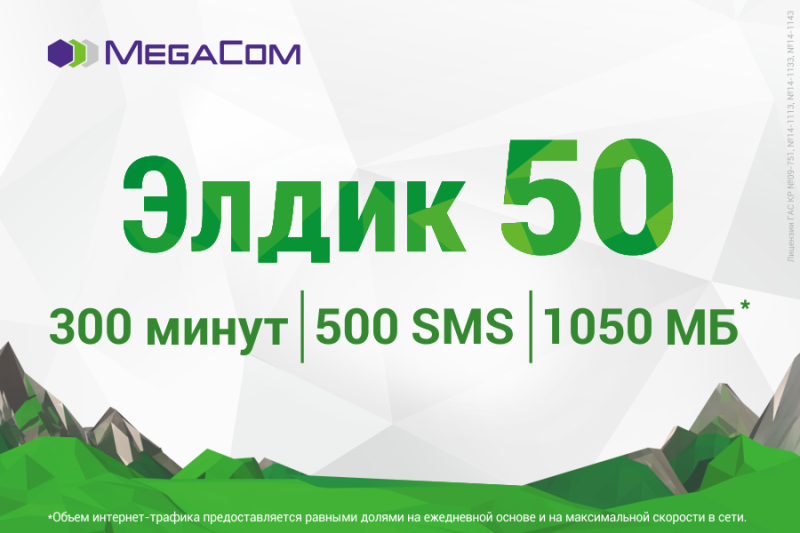 Новая серия «Элдик» от MegaCom предлагает воспользоваться одной из пяти выгодных опций на выбор. Создавая их, оператор мобильной связи придерживался своих основных принципов: простоты, доступности и отсутствия скрытых условий. Подберите то, что нужно именно вам в опциях «Элдик50», «Элдик80», «Элдик120», «Элдик160», «Элдик210». Подробнее на сайте www.megacom.kg.