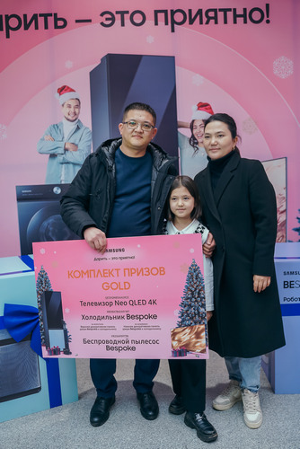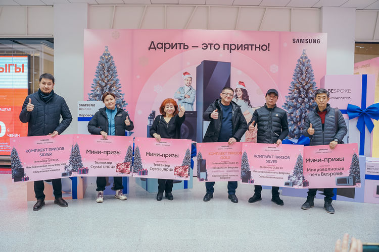 4 февраля в 14.00 в ТРЦ «Дордой Плаза» в Бишкеке прошло торжественное чествование победителей розыгрыша, где региональный менеджер Samsung Electronics Central Eurasia Камиль Усупбаев вручил призы 13 счастливчикам.