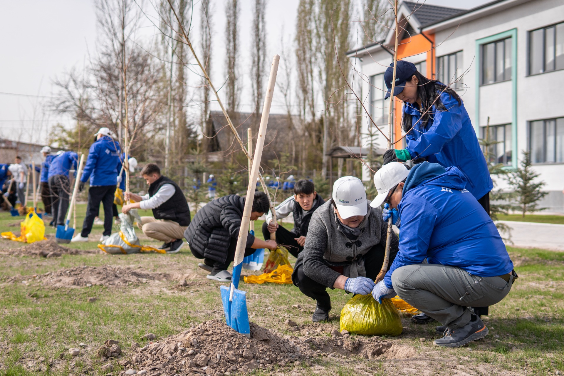 По уже сложившейся традиции большая делегация из сотрудников KICB, представителей МОФ «Инициативы Розы Отунбаевой» и организации Ага Хана по развитию высадили деревья и кустарники в недавно открытой школе № 101, которая находится в жилмассиве «Ак-Босого».