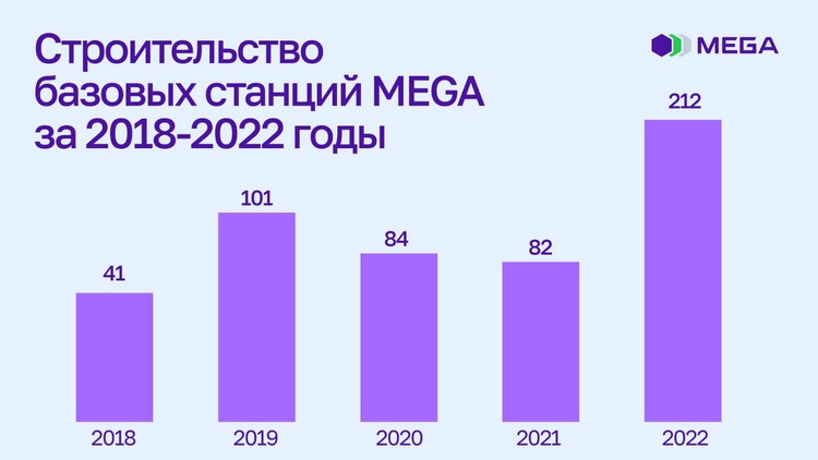 В преддверии 17-летия компании MEGA государственный оператор связи представил итоги технического развития сети за 2022-й. Согласно данным ЗАО «Альфа Телеком», за отчетный период фирма построила рекордное за последние пять лет количество новых базовых станций, а также модернизировала введенные ранее в эксплуатацию.