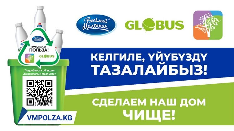 Бренд молочных продуктов «Веселый молочник», сеть магазинов Globus и приложение Tazar App запустили в Бишкеке экологическую инициативу «Сделаем наш дом чище».