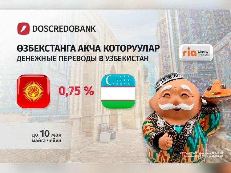 Отправлять деньги из Кыргызстана в Узбекистан стало еще выгоднее! Комиссия на переводы через Ria Money Transfer снижена до 0,75 процента от суммы перевода.