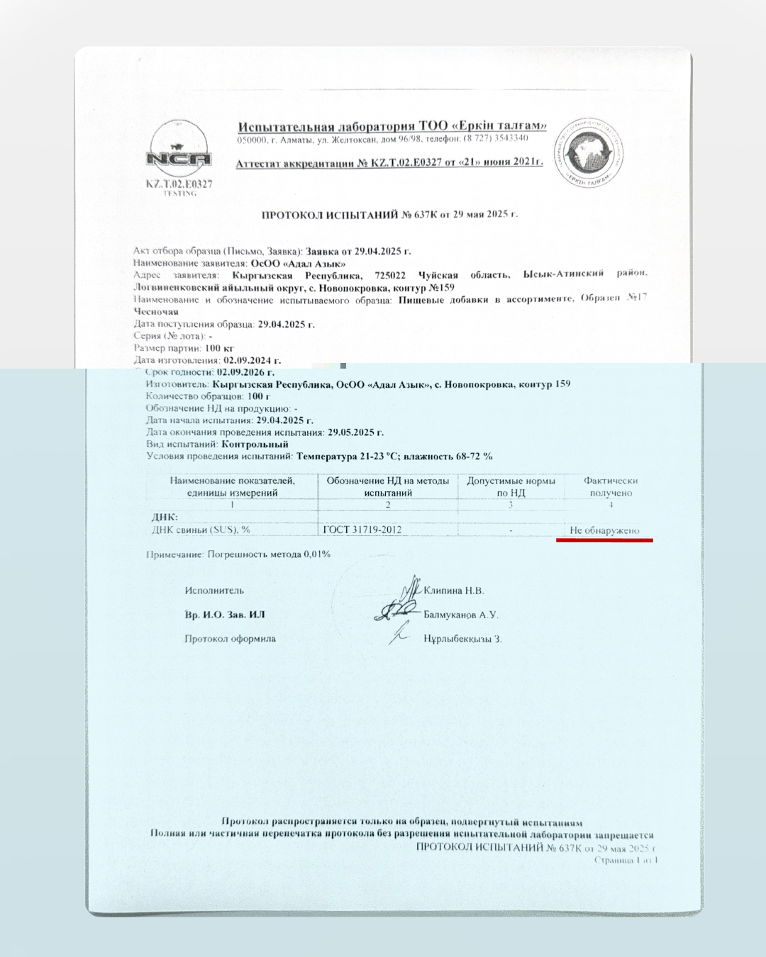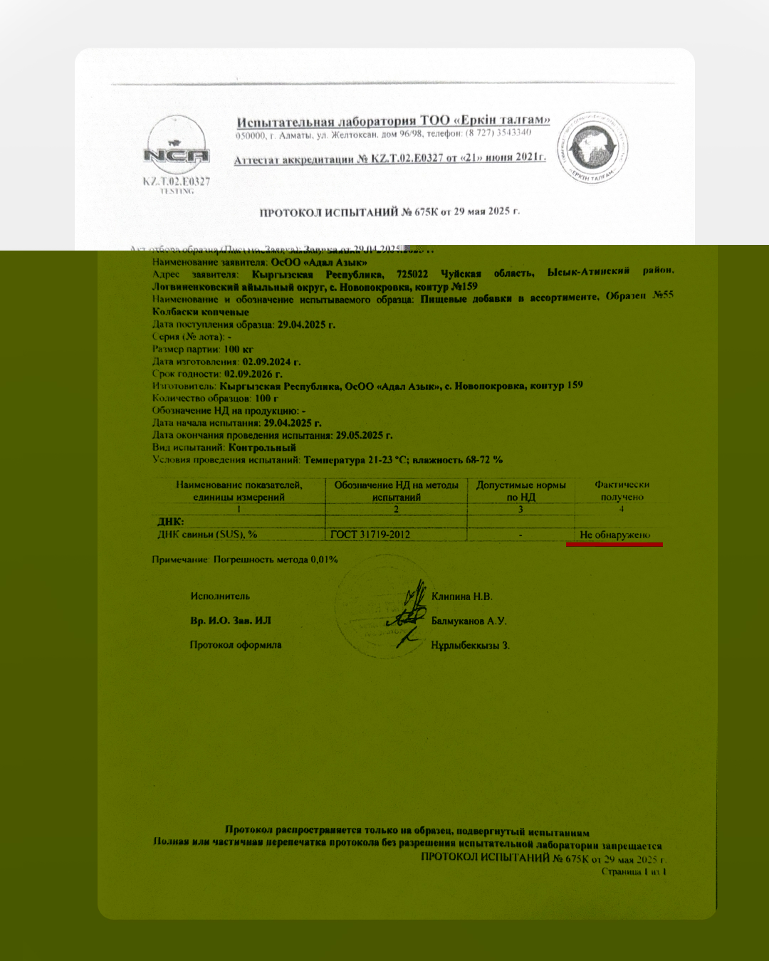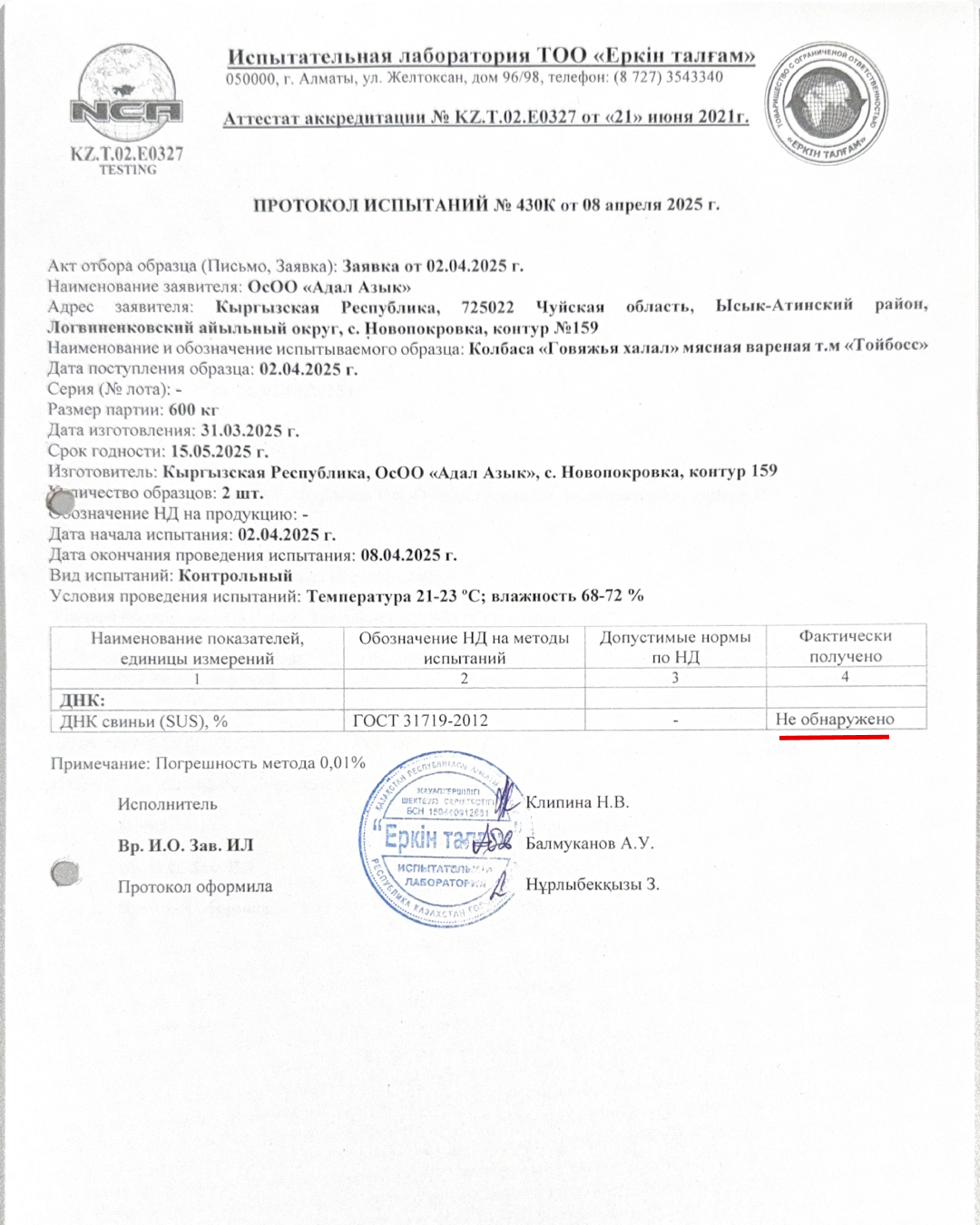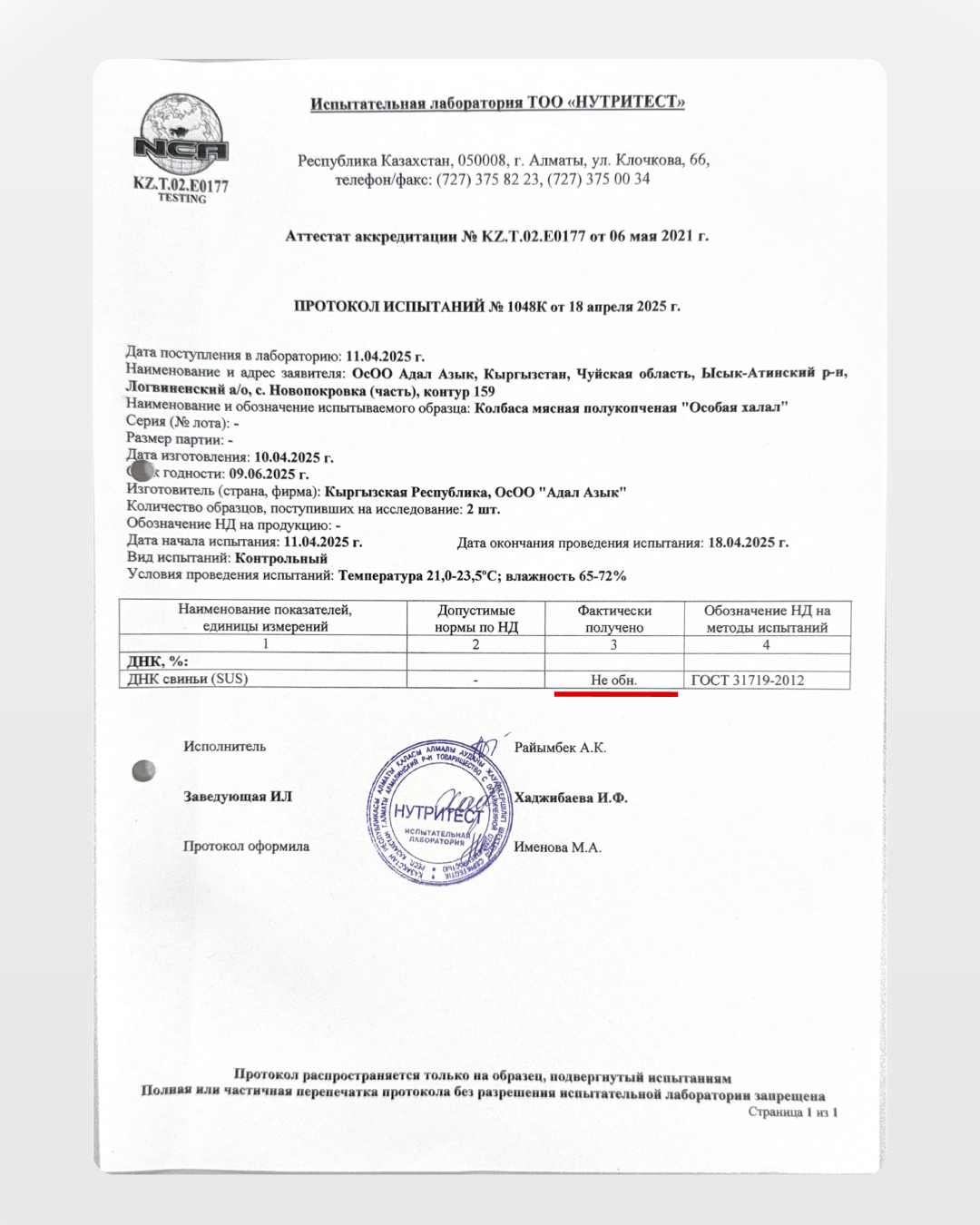 По данным независимых лабораторий, в образцах колбасы и других изделий не обнаружено ДНК свинины и компонентов, которые противоречат требованиям халал.