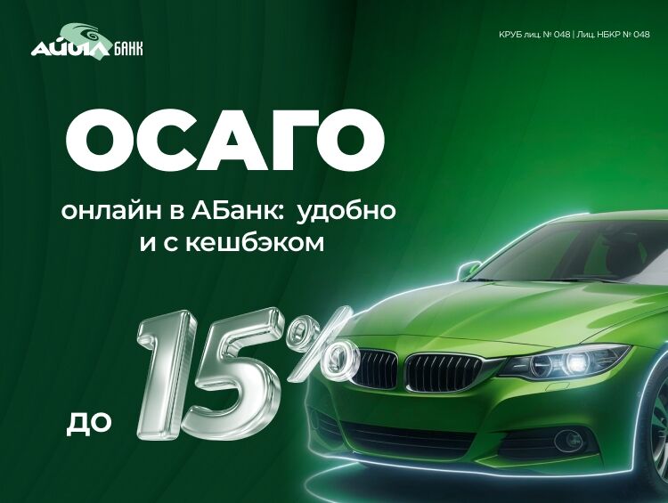 «Айыл Банк» упростил оформление ОСАГО: теперь полис можно купить прямо в приложении «АБанк» — без визитов в офис и лишних бумаг. Достаточно выбрать страховую компанию, оплатить полис в пару кликов, и кешбэк до 15 процентов сразу вернется на счет или карту. Это экономия времени и денег, а все нужные услуги — всегда под рукой.