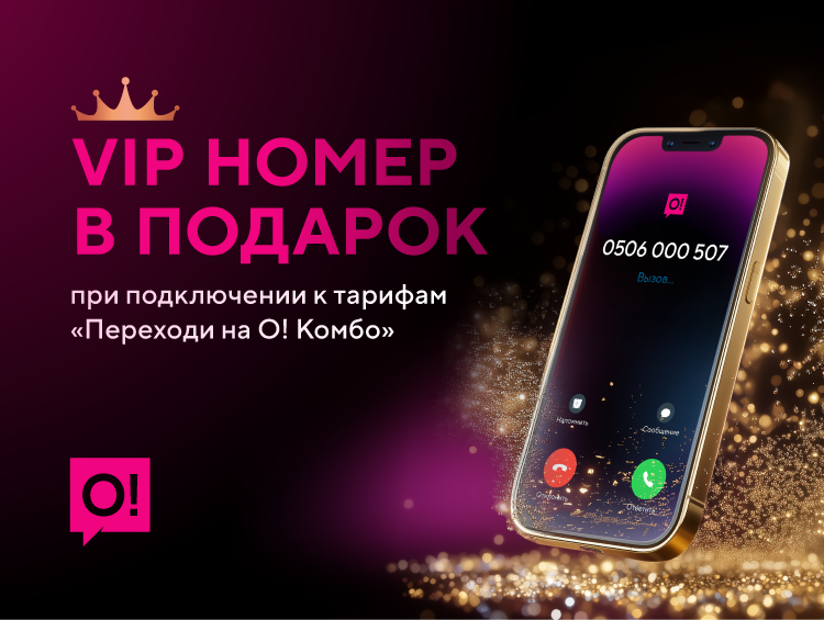 VIP- и Gold-номера в любом коде сети О! можно подключить бесплатно, не выходя из дома. Достаточно подключить один из тарифов линейки «Переходи на О! Комбо» на полгода вперед и забрать красивый номер в подарок!