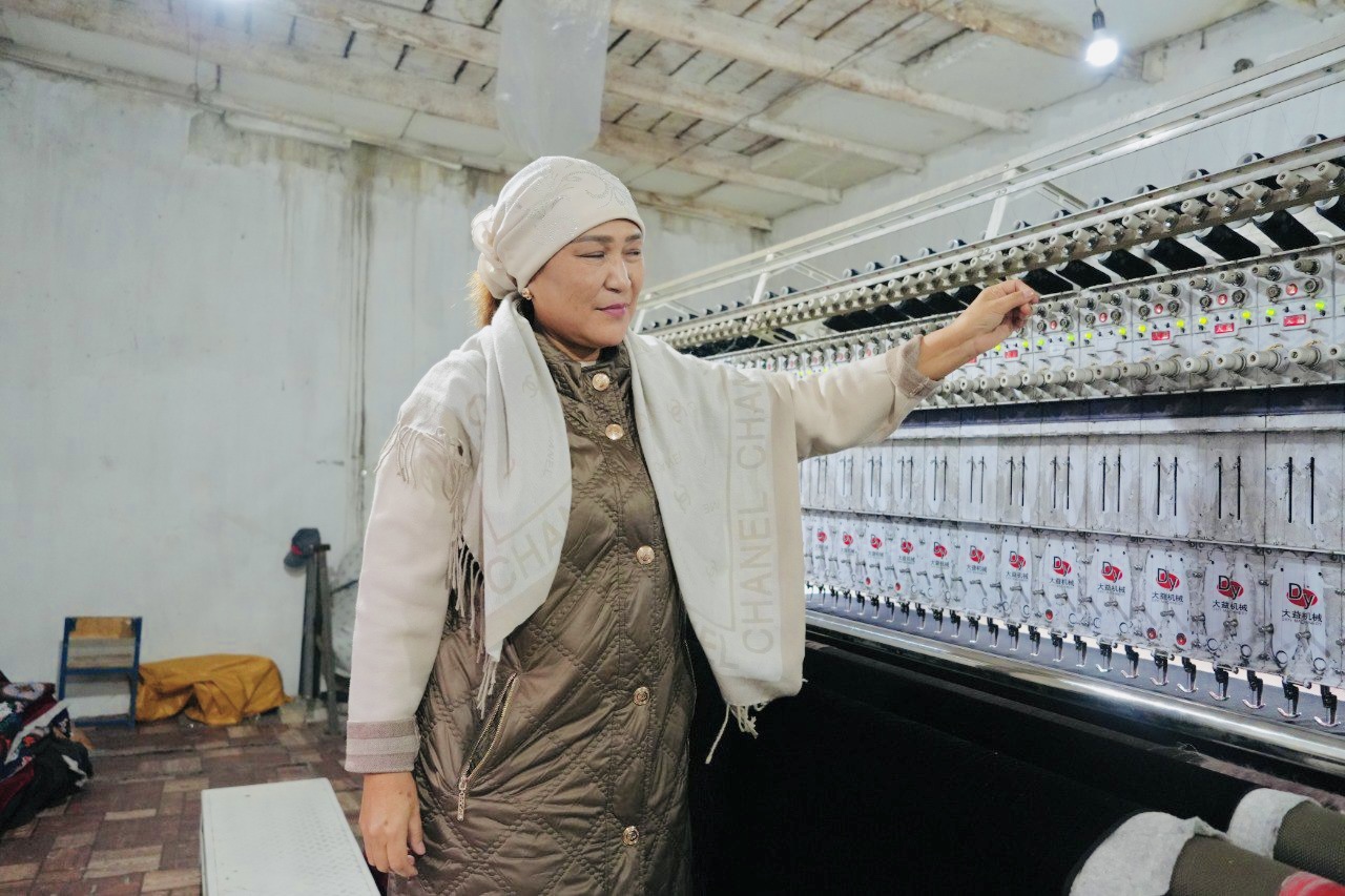 Также делегация посетила швейный цех Майрамкан Айтмаметовны, клиентки «Банка Компаньон». Она развивает швейный бизнес уже много лет: начинала с пошива калпаков и праздничных нарядов для тоев. Затем, четыре года назад, получила кредит в «Банке Компаньон», приобрела промышленные швейные машины и перешла к масштабному производству стеганых жилетов и чапанов. Позднее, в 2023-м, ее супруг уехал на заработки в Россию, чтобы поддерживать семью, и с тех пор Майрамкан регулярно получает денежные переводы через мобильное приложение банка.