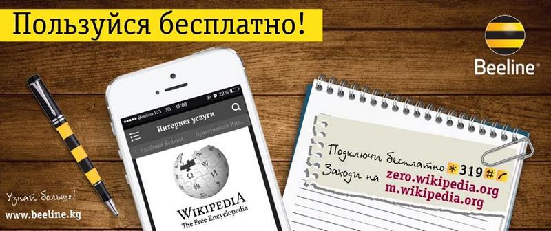 Напомним, в апреле 2013 года группа компаний VimpelСom, в которую входит Beeline-Кыргызстан, объявила о сотрудничестве с Фондом Wikimedia, поддерживающим работу интернет-энциклопедии Wikipedia. Так, услуга «Бесплатная Wikipedia» была запущена сначала в России, а затем в Казахстане. В прошлом году услуга стала доступна абонентам международного сотового оператора Beeline в Кыргызстане.