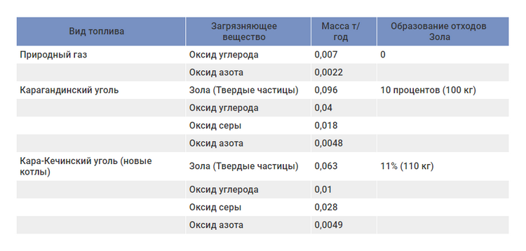 При сжигании 1 тонны угля и 1 тысячи кубических метров газа в атмосферу выбрасываются загрязняющие вещества и образовываются вредные отходы: