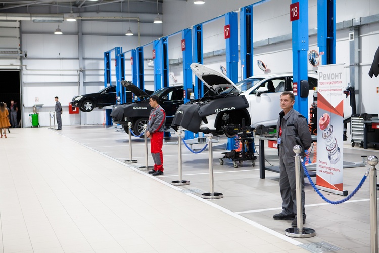 «А это слесарный цех. В нем 16 постов, благодаря чему можно одновременно ремонтировать множество машин. Квалифицированные механики имеют сертификаты Toyota Motors Corporation, — сообщил Денис Стрелков. — Рядом малярно-кузовной цех, тоже на 16 постов. Он также не имеет аналогов в стране. Все оборудовано по последнему слову техники. Механики готовились в лучших учебных центрах Европы».