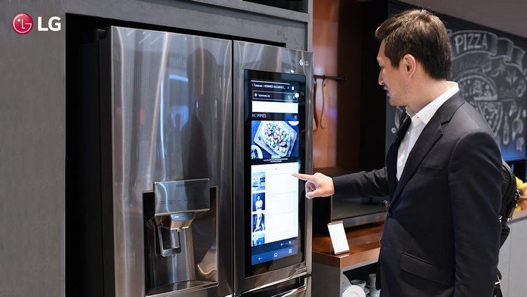 Умный холодильник InstaViewThinQ занимает центральное место зоны ThinQ Gourmet с кулинарной тематикой. Здесь посетители могут из первых рук испытать передовые возможности холодильника в подборе рецептов и мгновенной настройке режима приготовления в подключенной печи и других кухонных приборах. Искусственный интеллект и 29-дюймовая уникальная сенсорная панель, которая становится прозрачной, если по ней постучать, позволяют холодильнику стать не просто бытовым прибором на кухне, а настоящим техническим прорывом, меняющим способ взаимодействия с техникой.