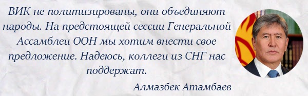 «Было много споров по поводу реформирования и оптимизации СНГ. Я благодарен всем, кто участвовал в обсуждении вопроса, за то, что мы пришли к компромиссу и сегодня сможем подписать документы. Они закладывают пути реформ. Мы начинаем первые шаги, и они самые трудные. Сегодня представитель Узбекистана вспоминал, что некоторые формулировки писал лично Ислам Каримов», - отметил Алмазбек Атамбаев.