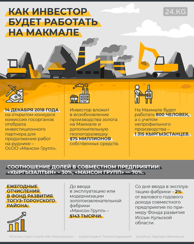 С 1 сентября 2018 года работу золотоизвлекательной фабрики рудника «Макмал» приостановили. Из 954 сотрудников сократили более 700 человек. Чтобы возродить Макмал, руководство ОАО «Кыргызалтын» решило использовать ту же схему, что и на других своих рудниках.