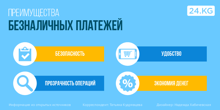 Во Франции свыше 90 процентов денежного оборота приходится на безналичные платежи и свыше 70 процентов населения используют банковские карты. В Китае последние два года основной способ оплаты — через QR-код.Кыргызстан тоже старается увеличить долю безналичных платежей. Для этого приняли специальную Государственную программу по увеличению доли безналичных платежей и расчетов на 2018-2022 годы. Анализ показывает, что ежегодно доля безналичных платежей увеличивается.