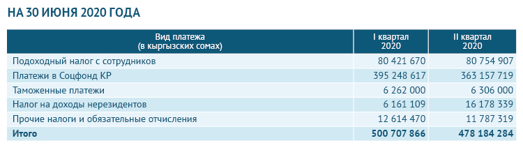 За первое полугодие 2020 года платежи в бюджет Кыргызстана в виде налогов, отчислений в Социальный фонд и других обязательных платежей составили 6,46 миллиарда сомов.