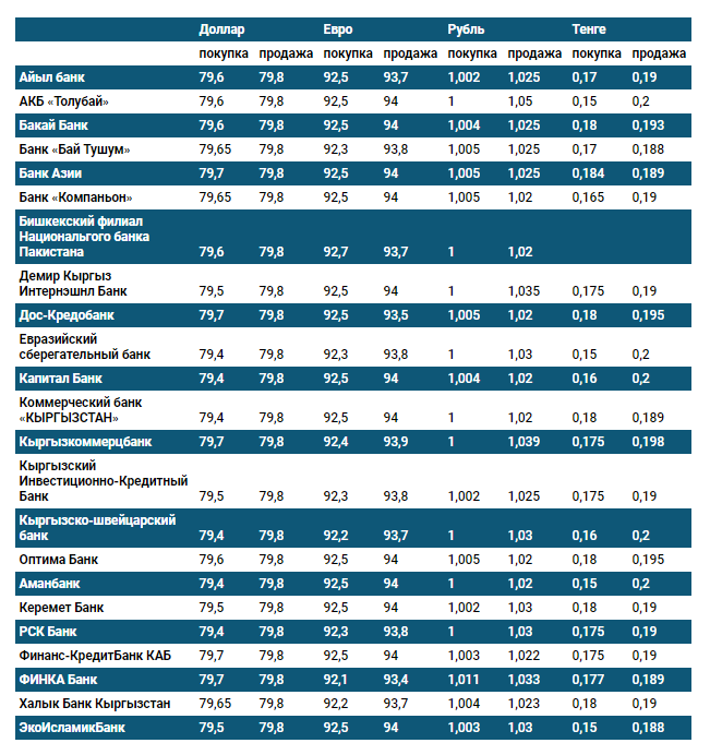 Курс доллара в коммерческих банках Кыргызстана на 29 сентября