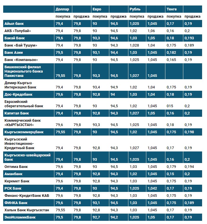 Курс доллара в коммерческих банках Кыргызстана на 14 октября